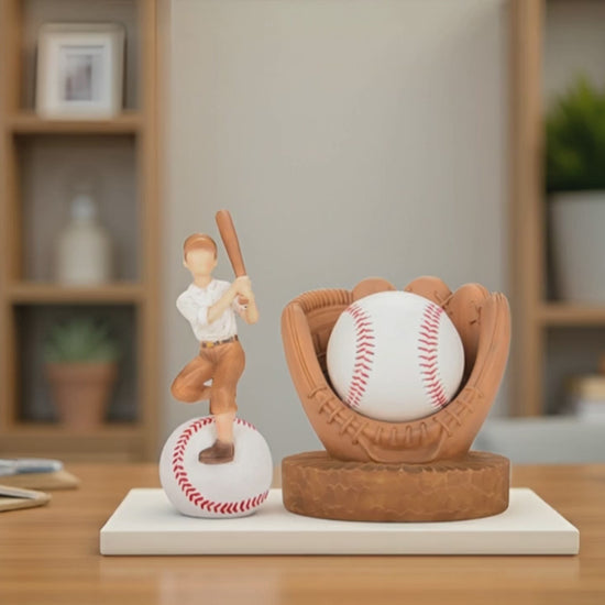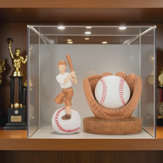- Functional Baseball Holder: VOFSTAND baseball ornament not just a decorative item, this piece doubles as a functional baseball holder, package with baseball display case allowing to securely display a favorite baseball in the center of the statue. A meaningful gift that reflects love, nostalgia, and a passion for baseball. This handcrafted baseball figurines is the ideal baseball player gifts for boys, sons, mens, baseball fans, coaches,baseball teams, dads,stepdad,grandfathers,husband.